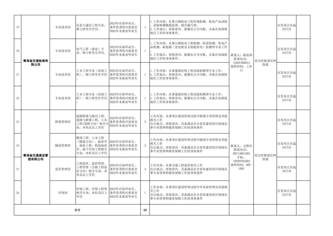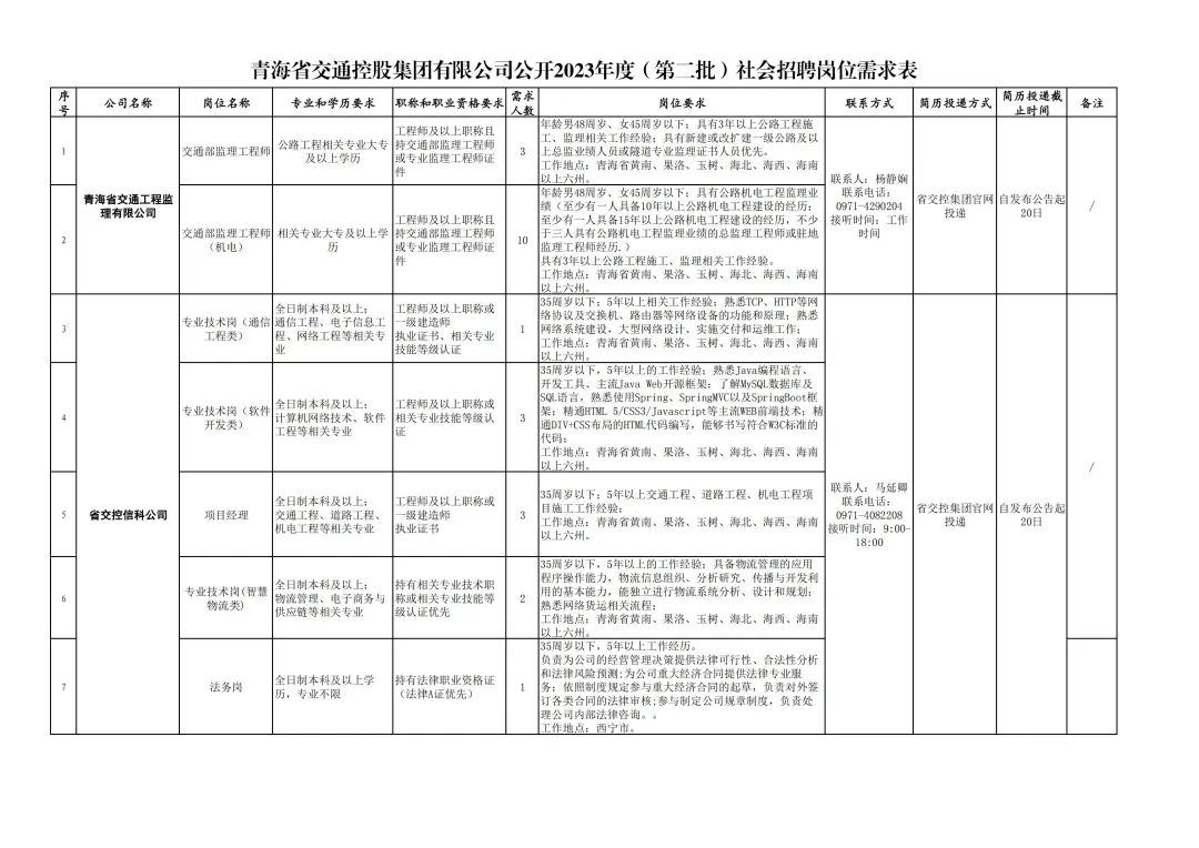 (一)本次招聘由青海省交通控股集团有限公司各二级公司自行组织实施,本公告由集团公司人力资源部负责解释。
