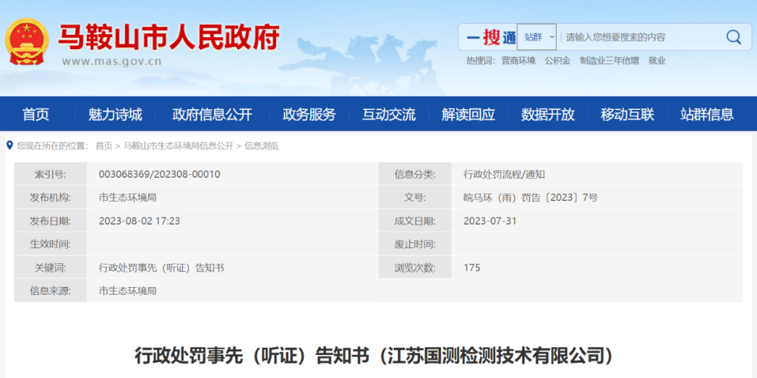 江苏省某检测公司伪造环境监测数据,被外省环境主管部门处罚