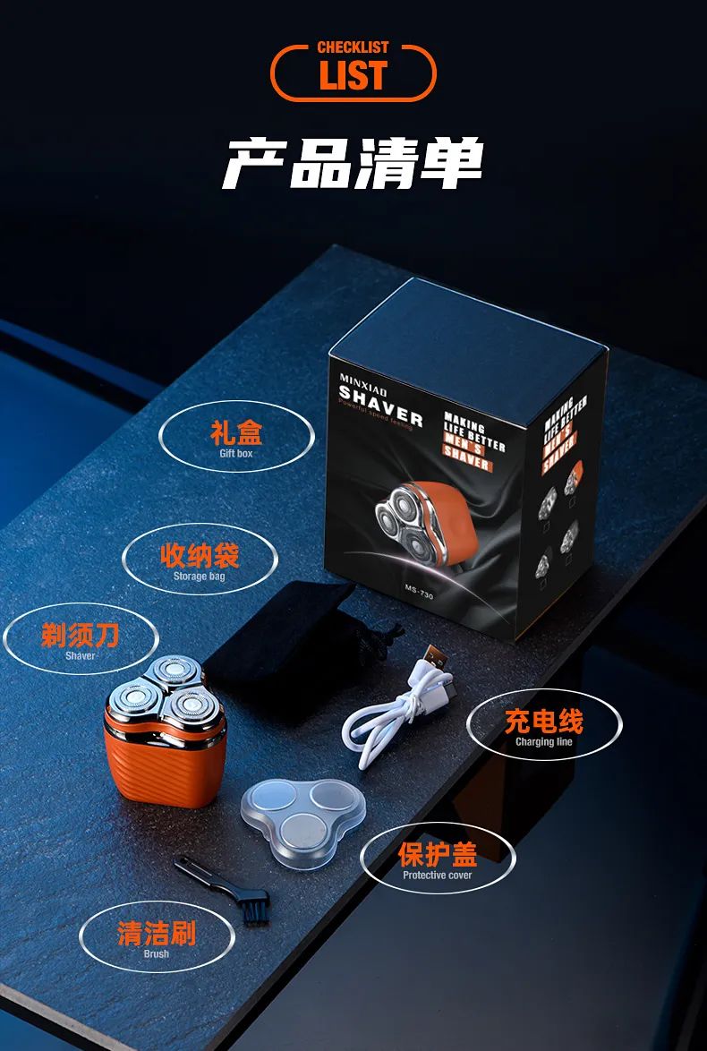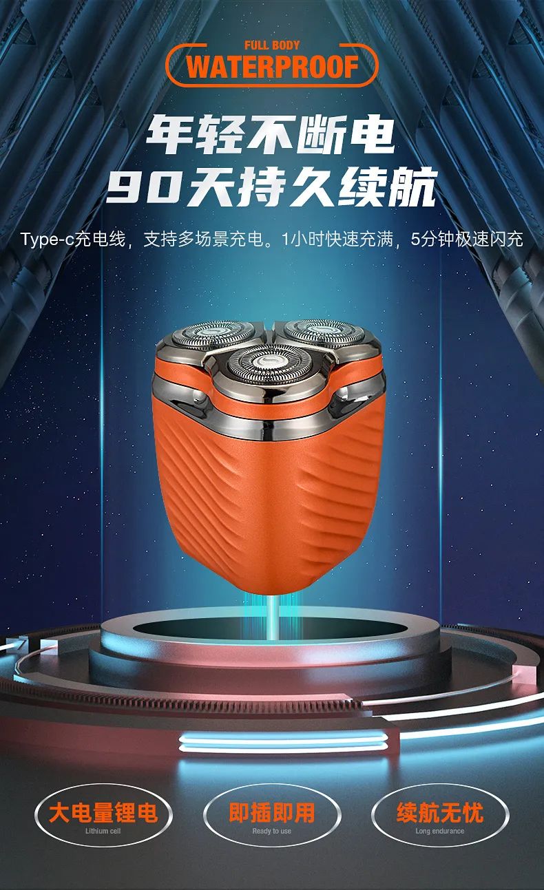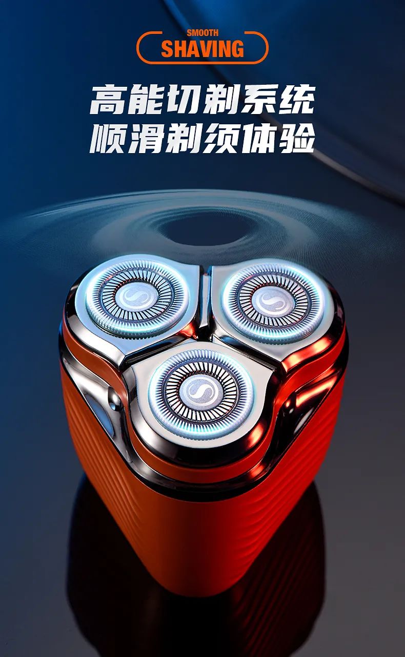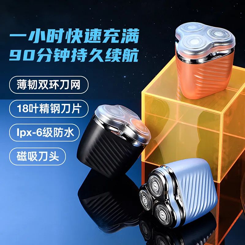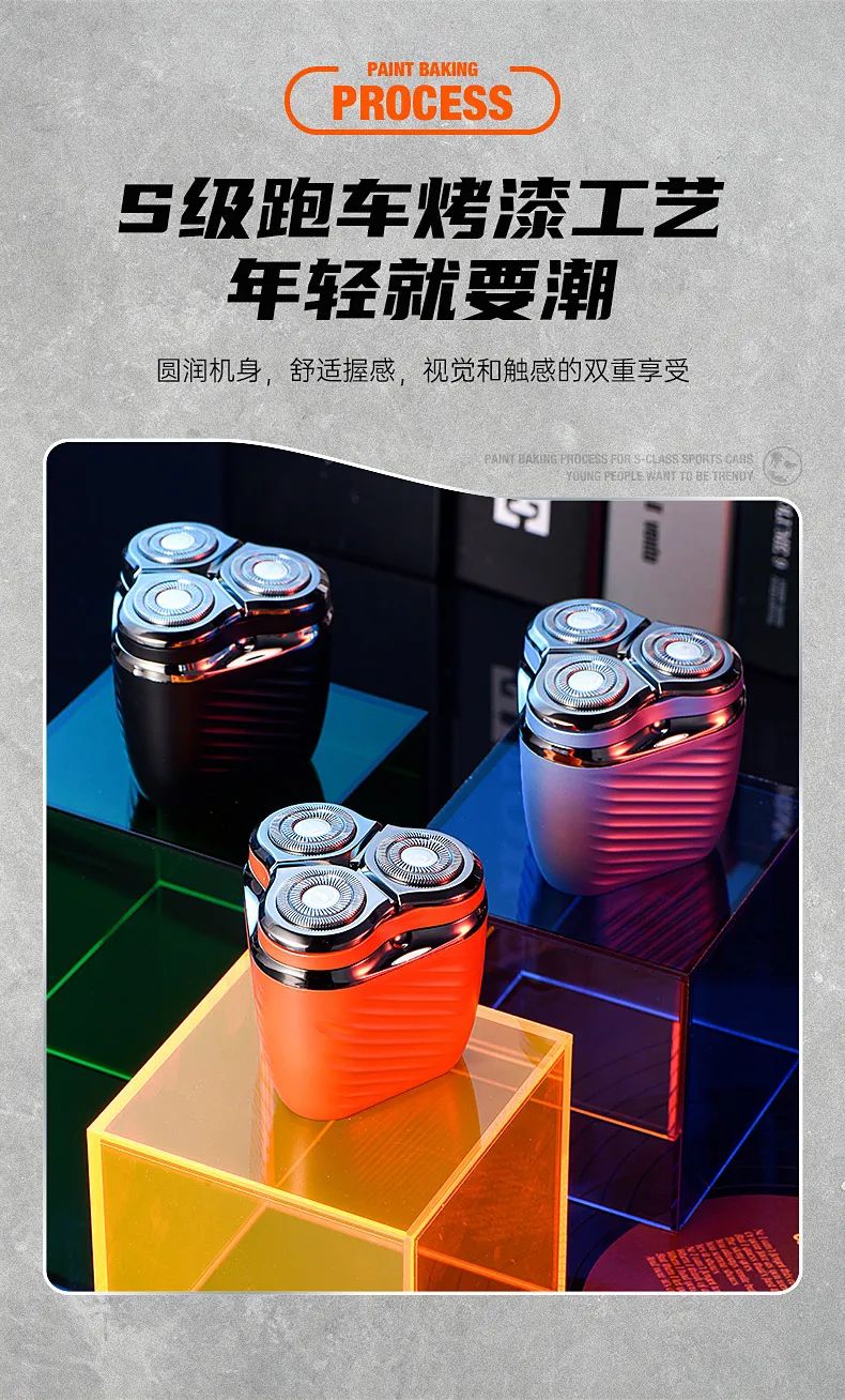 小巧精致,魅力加持,随时随地打造完美形象,小钢炮三头剃须刀。