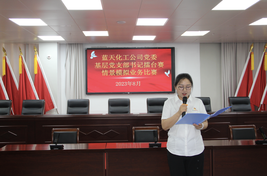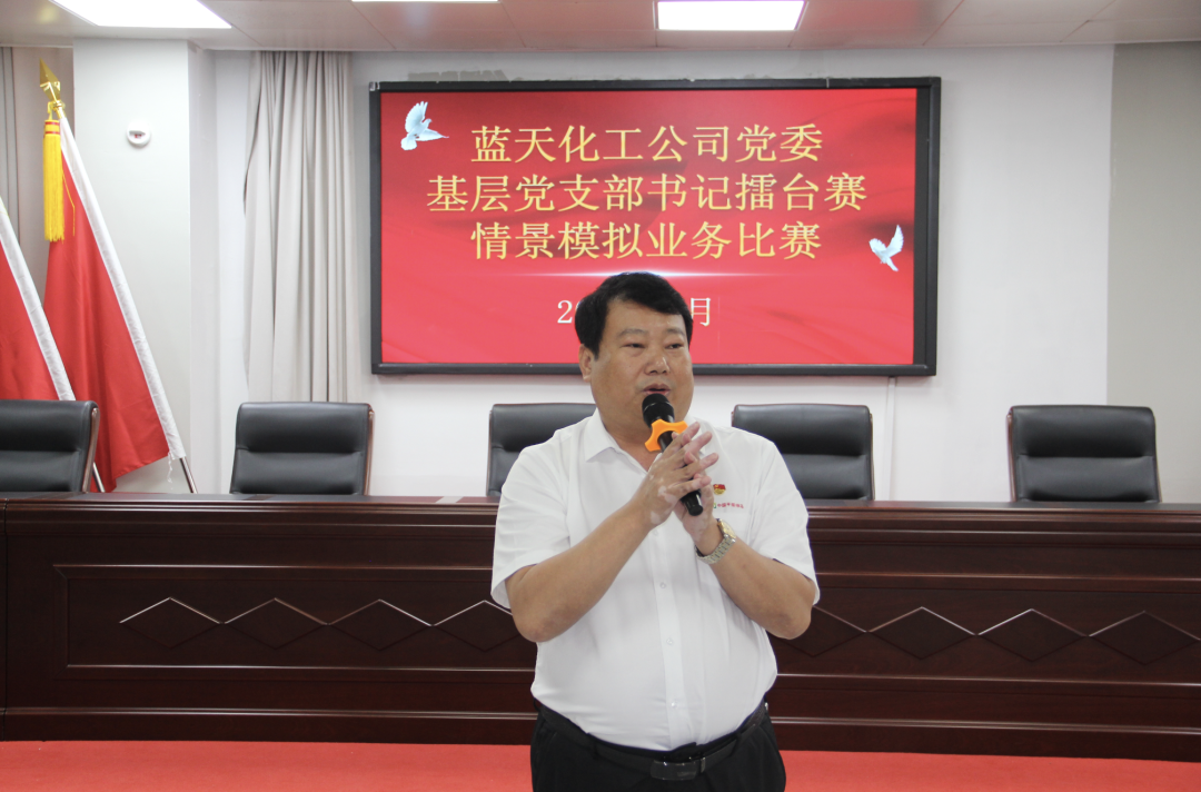 为提升基层党支部书记政治素质、业务能力和履职水平,按照集团党委开展“基层党支部书记擂台赛”活动要求,8月10日上午,蓝天化工公司党委在尼龙材料(遂平)公司综合楼四楼会议室开展“基层党支部书记擂台赛”情景模拟业务比赛。公司党委书记、董事长杨峰出席,驻马店区域的党(总)支部书记、副书记参加活动,活动由公司党委党群工作部部长关艳丽主持。