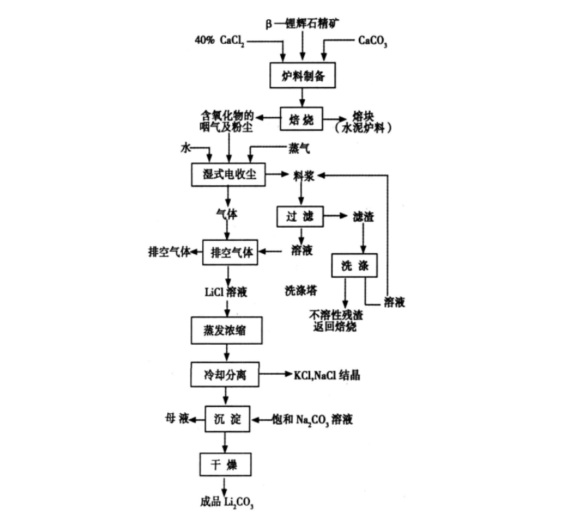 近年来我国在积极开发盐湖锂资源。但由于我国盐湖卤水中的镁含量较高,镁和锂这两种元素较难分离,前几年还没有大规模的产业化生产,所以我国一直从锂矿石中提取锂盐。由于不同的锂矿物其性质差别很大,从锂矿物中提取碳酸锂的工艺也各不相同,其主要工艺有如下几种。
