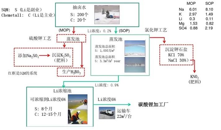 蒸发沉淀法优点是:工艺过程简单;能耗小;成本低;比较适宜碱土金属含量少、镁锂比低的卤水。