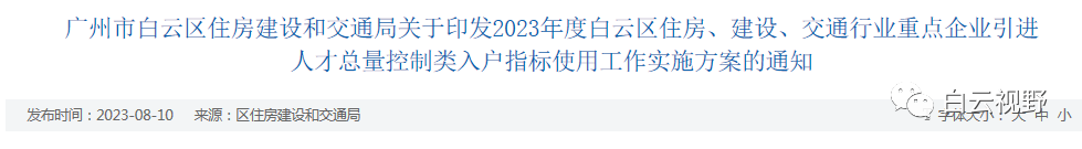 2023年度白云区住房、建设、交通行业重点企业引进人才总量控制类入户指标使用工作实施方案