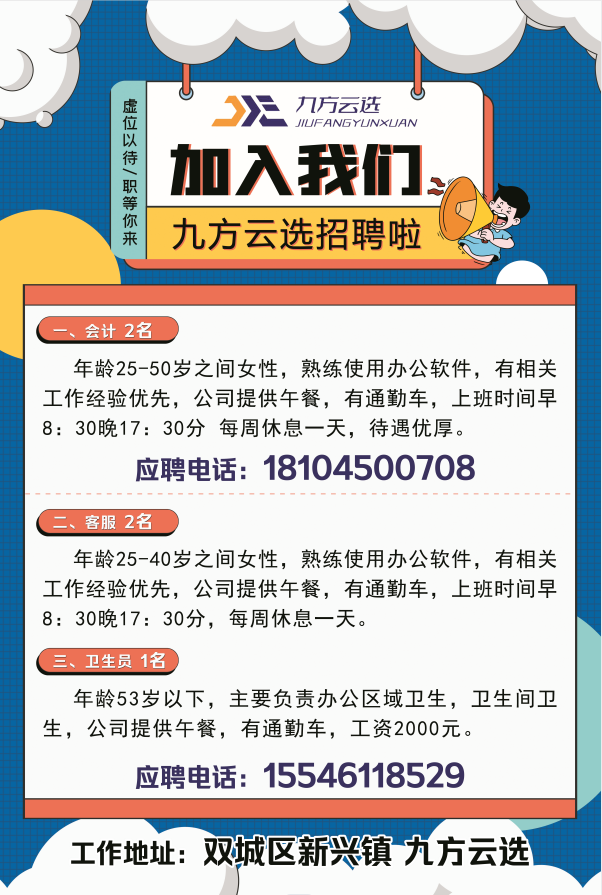 2.运营文员:熟练使用电脑办公软件,年龄20-25岁,薪资3000-4000元,五险一金