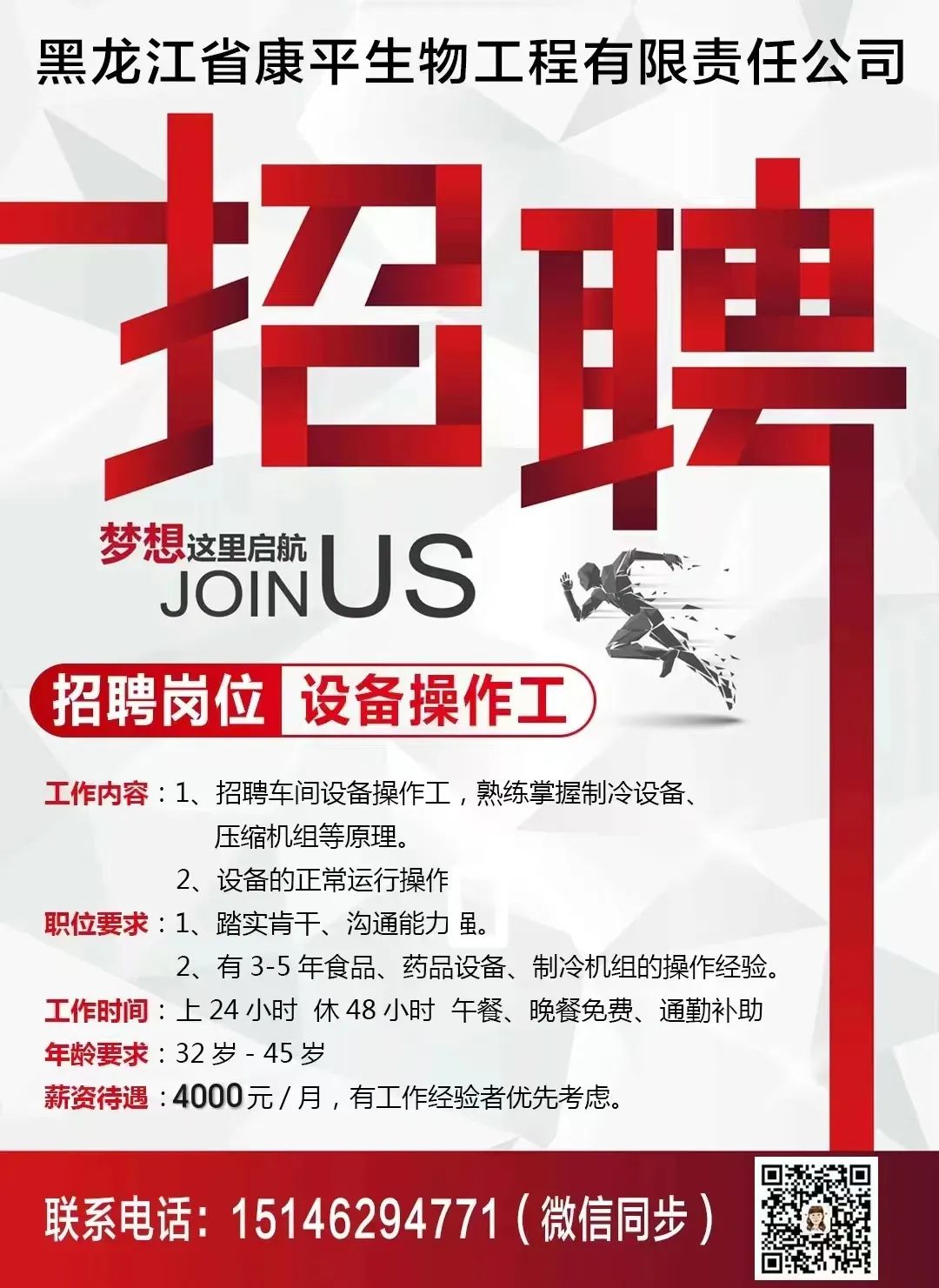 2、食品厂(酸菜)经理:本科以上学历,有管理经验及技术生产经验应聘电话:15104608777。