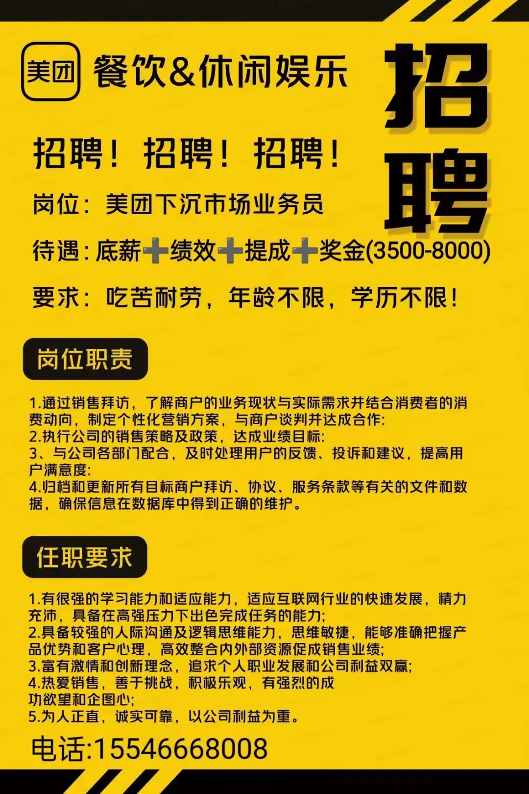 岗位要求:适应能力强,善于沟通交流,工作认真负责,以团队发展为中心,不甘平庸,勇于挑战高薪!