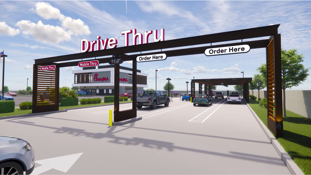 因此,Chick-fil-A 将在亚特兰大的试点餐厅设置四条 Drive Thru 通道: