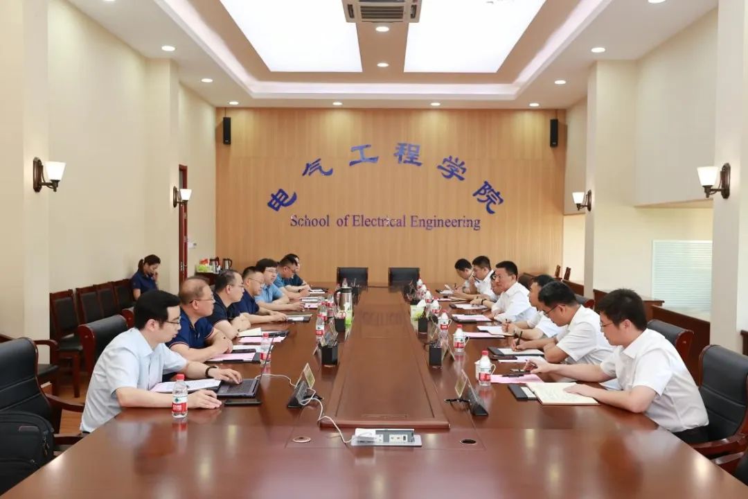 2023年8月8日上午,国网济南供电公司总经理任志刚、副总经理胥明凯一行到访山东大学电气工程学院并座谈交流。国网济南供电公司办公室主任韩晓光、发展部主任瞿寒冰、运检部主任于光远、调控中心主任秦昌龙、发展部高工刘晓一同到访。山东大学电气工程学院党委书记殷录民、院长丁磊、副院长杨明以及部分班子成员和老师参加了座谈会。任志刚指出,本次调研交流是公司学习贯彻习近平总书记考察南瑞集团重要指示精神的具体实践,希望在人才互派培养、科研协同攻关、落地战略合作机制方面开展长效合作。特别是,鼓励青年创新人员在专业领域“十年磨一剑”,联合培育具有学术气质的专家人才;以先进成果示范应用为载体,在起步区、高新区等新型电力系统示范区开展重大科技集成示范;在高端输变电、配用电、智能运检和电力调度等现代产业链重大需求持续发力,打造济南创新示范主战场。下一步,双方将梳理凝练1-2个特色攻关方向,聚焦关键技术,组建柔性攻关团队,发挥双方优势,实现优势互补共同发展。山东大学电气工程学院与许继电气保护自动化公司召开科技合作交流会