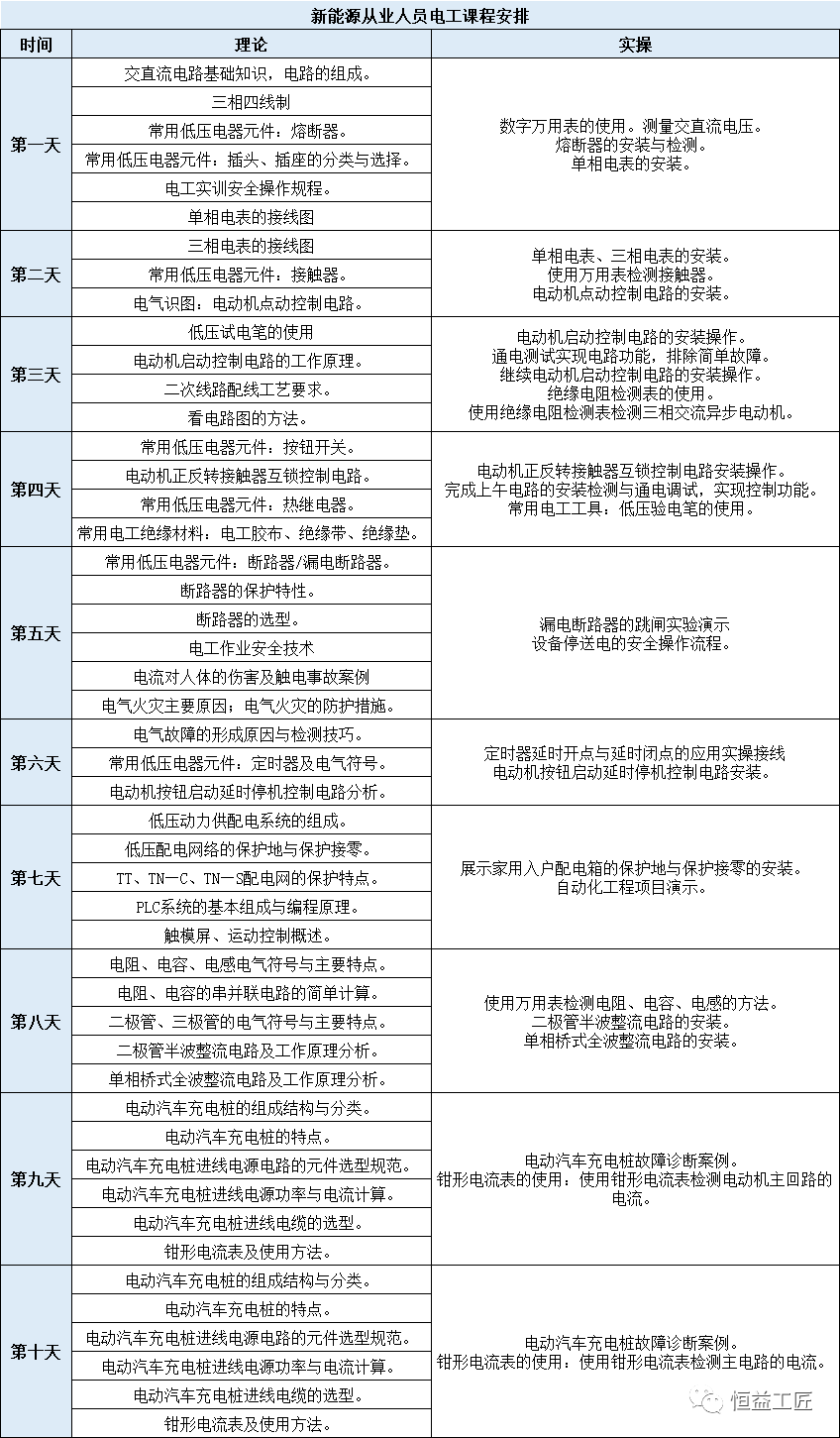 课程内容包括电工基础理论、电气安全与防护、电气故障排查与维护等。课程通过现场教学,分享实际案例,帮助学员深入了解新能源行业电工的实际操作和挑战。