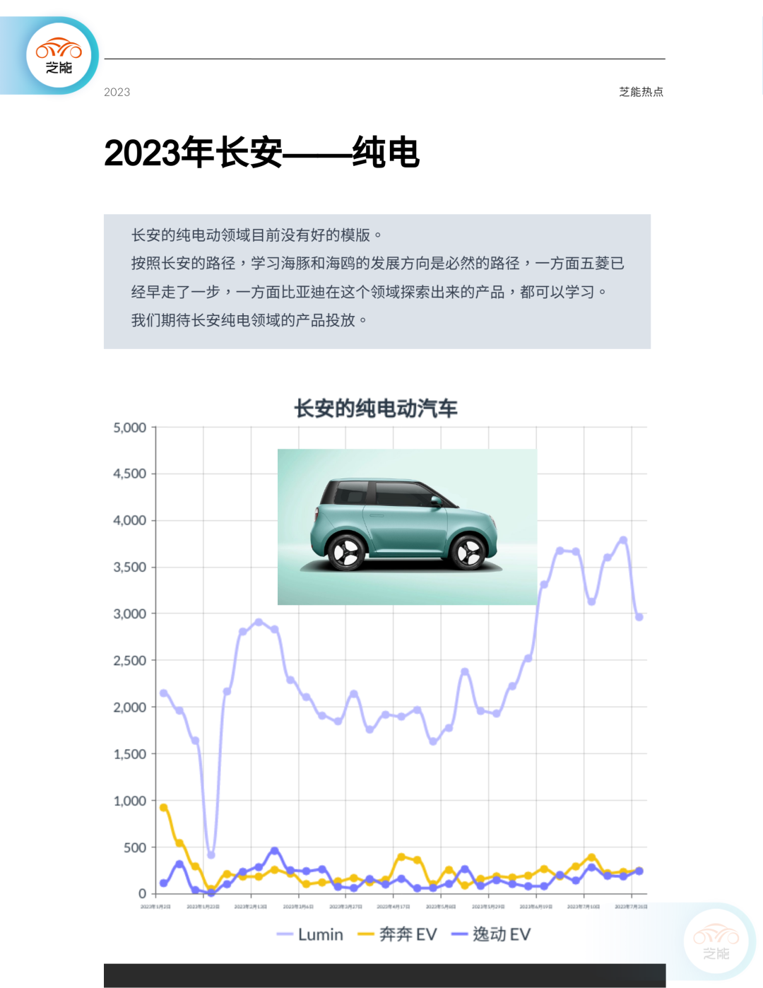 纯电板块:长安在纯电动领域的表现目前尚待加强。与其他品牌相比,长安尚未在纯电市场找到一个突破的模板或领军产品。