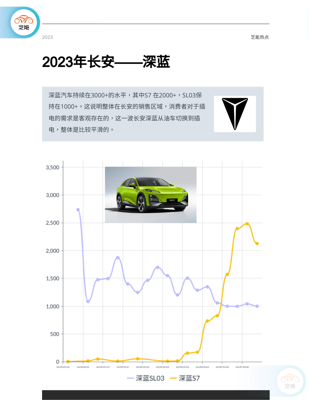 插电板块 :深蓝汽车的销售数据保持强劲,连续维持在3000+辆的销售水平。其中,S7型号销售2000+辆,而SL03也达到了1000+辆的销售量。长安深蓝品牌从传统油车平稳过渡到插电车型,显示出品牌的市场策略和产品研发实力。