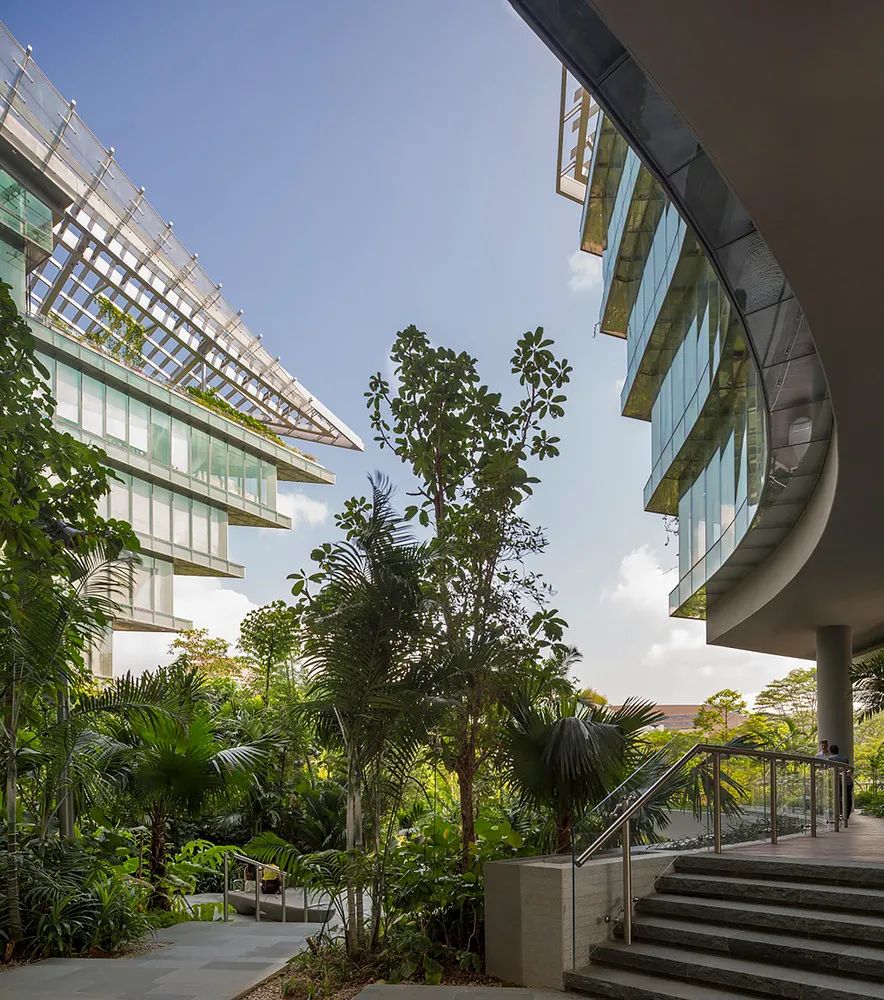 在园区的配套服务供应方面,对工作、休闲、商业等功能精细化的混合建立了一个互动的生物医学社区,工作、学习以及放松所需要服务空间都安排在组团的研究综合体之内。