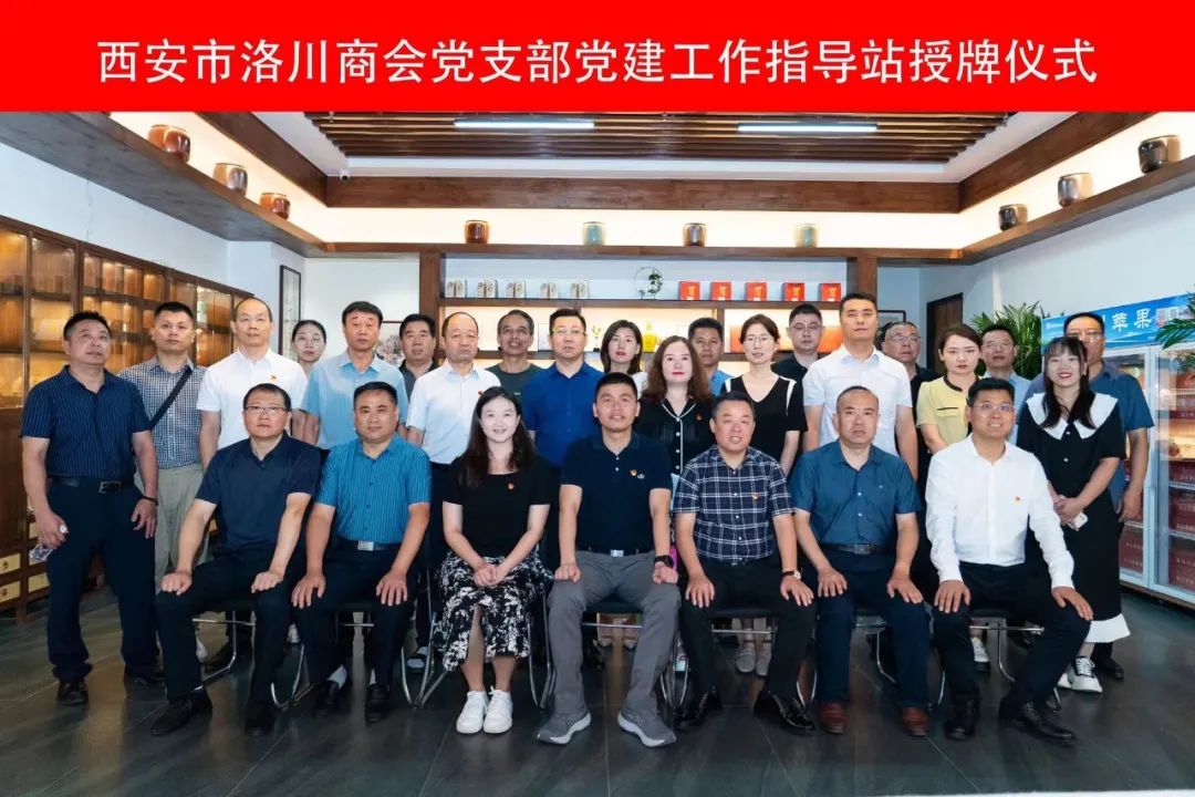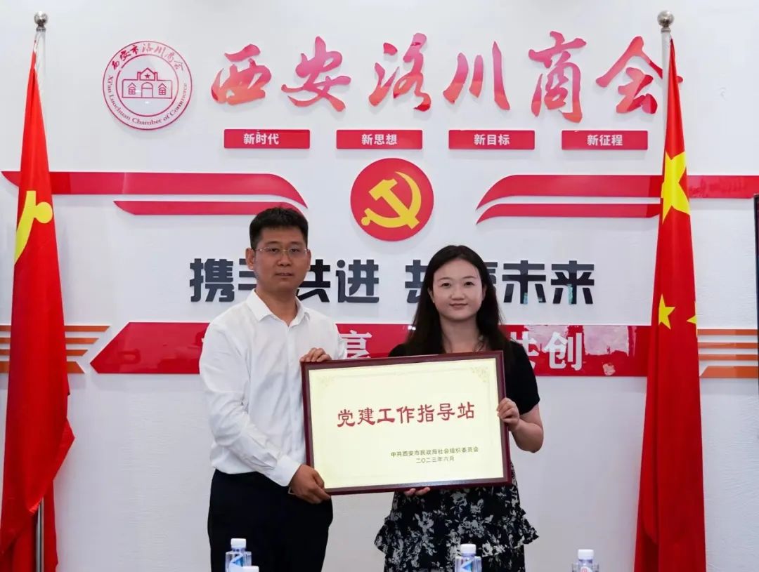 西安市民政局党委胡欣同志为西安市洛川商会授予“党建工作指导站“牌匾。
