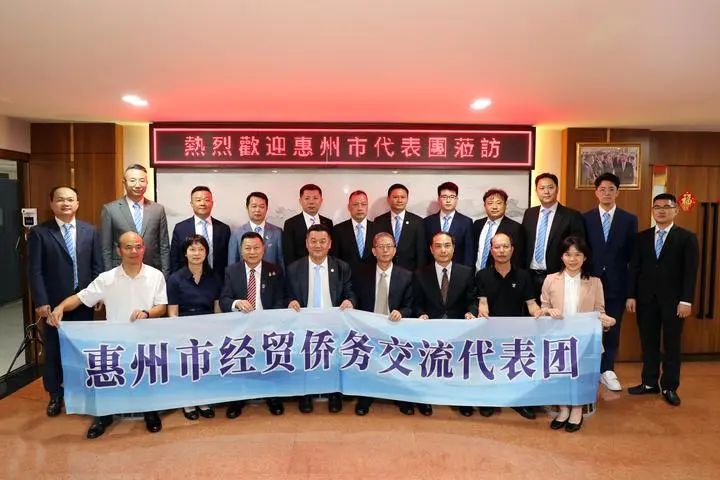 惠州市代表团来访成员有:惠州市政协主席,代表团团长温勇瑜、惠州市归国华侨联合会主席曾志谦、惠州市政协港澳台侨外事委员会主任周海英、惠州市委外事工作委员会办公室副主任汤伟聪、惠州市政协教科文卫体委员会副主任张金华、惠州市归国华侨联合会联络部部长张如燕。