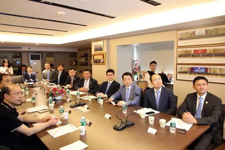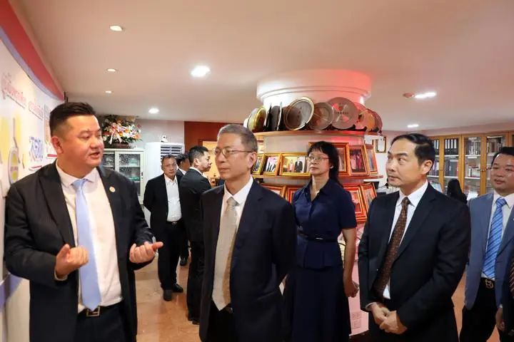 李嘉淳会长首先带领访问团一行参观青商会历史文化墙,向大家逐一介绍商会成立20年来的重要事迹。并一同观看泰国华人青年商会成立20周年纪录片《不忘初心 砥砺前行》、《惠州市招商引资宣传片》。