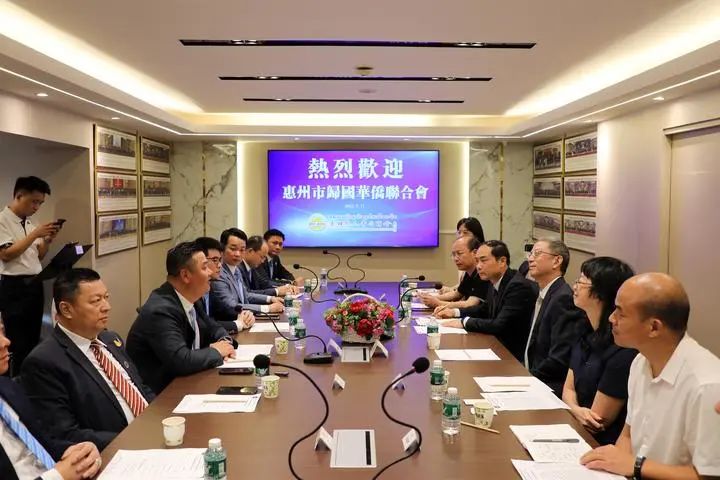 2023年7月17日下午,青商会李嘉淳会长于商会会议室欢迎接待惠州市政协主席温勇瑜、惠州市侨联主席曾志谦一行来访,双方进行亲切问候并举行交流座谈。