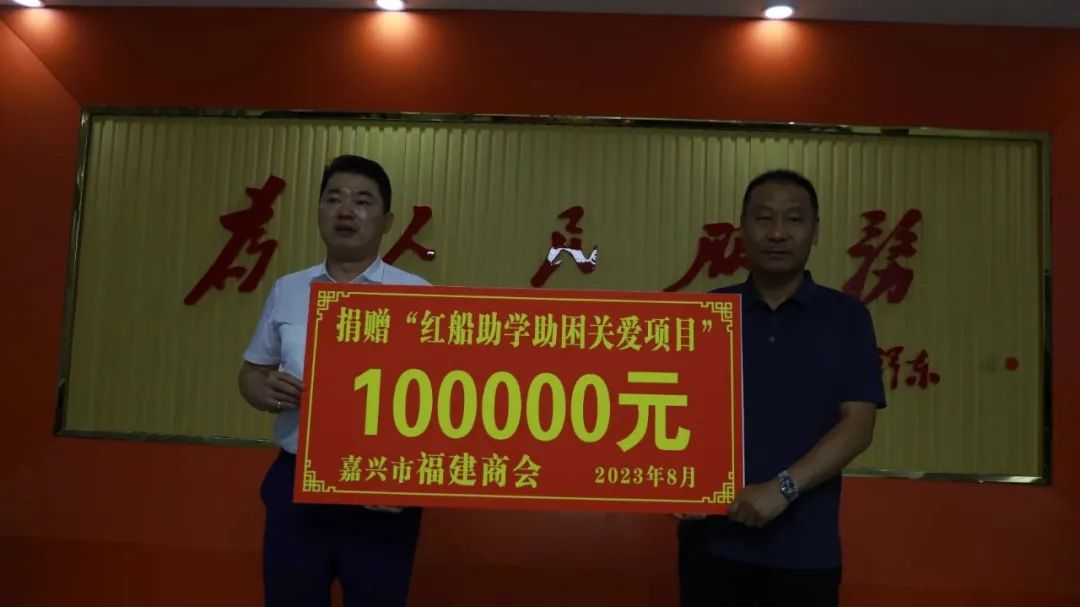 座谈会最后嘉兴市福建商会向“红船助学助困关爱项目”捐款100000元。