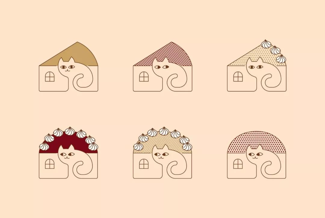 再来看看台湾设计师 Burusu Huang 为蛋糕品牌“猫居”设计的 logo,他将猫、房子、蛋糕三个元素结合到一起,让一个温馨甜美的蛋糕屋形象通过这个logo呈现给所有的顾客。