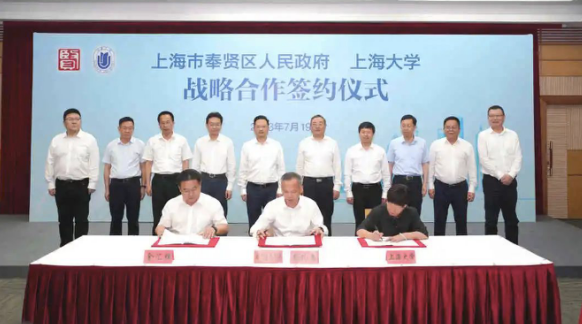 7月19日,上海市奉贤区人民政府与上海大学正式签署战略合作框架协议,双方将充分发挥各自优势,秉持“优势互补、互惠互利、讲求实效、共同发展”原则,就产学研合作、人才培养、社会发展、乡村振兴等领域开展全面战略合作,携手开启区校合作新篇章。上海大学党委书记成旦红表示,当前,上海大学正深入推进“五五战略”发展,发挥综合性大学优势,服务国家和城市发展需求。上海大学将以此次签约为契机,结合奉贤经济社会发展需求,整合优质资源,围绕生物医药、新能源、新材料等重点产业,以重大技术突破为导向,不断提升区域创新能力和水平,促进科技成果更好、更快在奉转化落地,为加快推动南上海科创中心建设贡献上大力量。