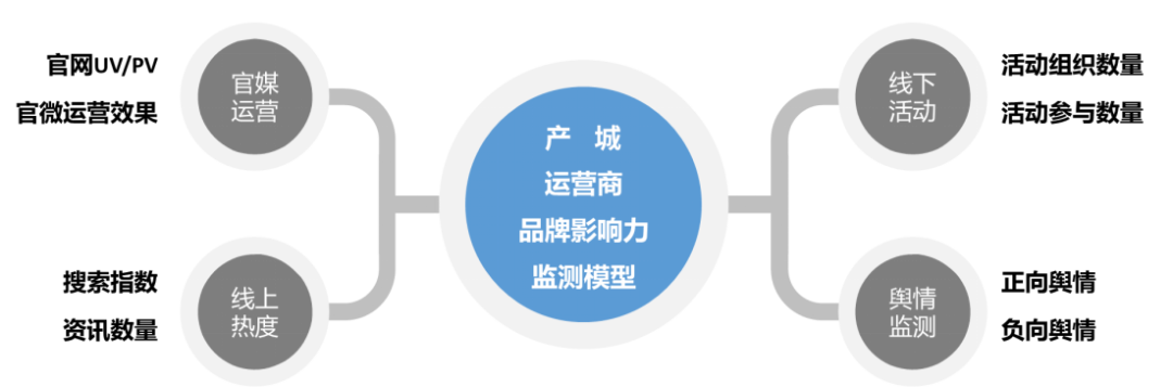 产城运营商品牌传播力主要是从官媒运营、线上品牌热度、线下活动曝光及品牌舆情监测等四个维度进行品牌传播力监测,按照权益比重计算分数,进行排名。