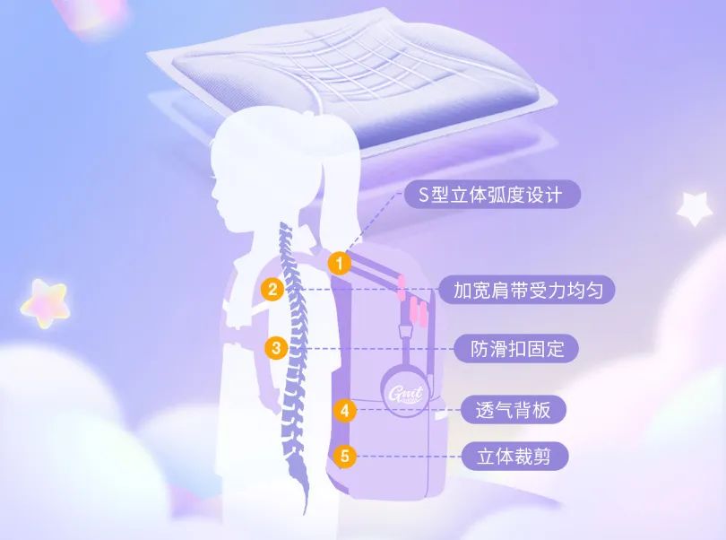 高端儿童护脊书包领导品牌,780g超轻自重,护脊独家专利,久背不累。7点式精准释压背负系统,分散承重至两侧肌肉,减轻超30%脊背腰椎压力。