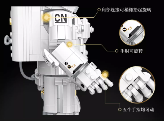 破晓宇航员:轻奢白与星际灰的碰撞,见证人类对宇宙无尽的探索。精密电子仪器及机械结构,硬核解构宇航服黑科技,20+处可动,解锁各种新pose。金属质感十足,提升机械魅力。