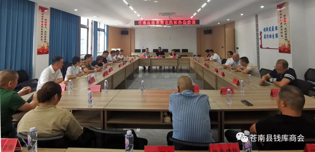 8月10日下午,钱库商会会长办公会议在钱库商协会综合体会议室召开,钱库镇统战委员陈如道、人大副主席王晓冬、统战办陈启茜及商会副会长成员共20余人参加会议。会议由陈启茜主持。