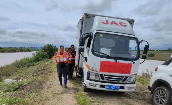 8月10日下午,方正县农商银行将提前准备好的矿泉水、饼干、火腿肠等物资送至防汛一线,对持续奋战,坚守一线的工作人员致以崇高敬意。