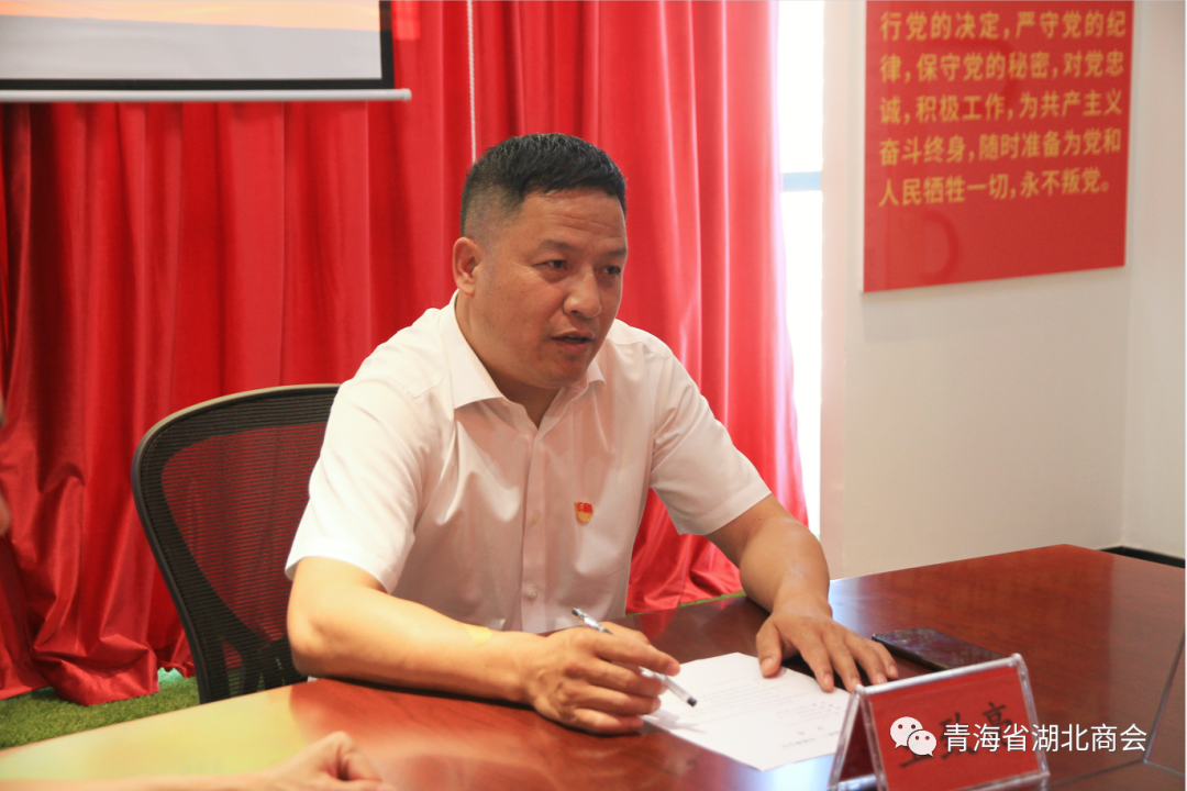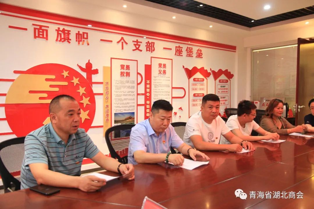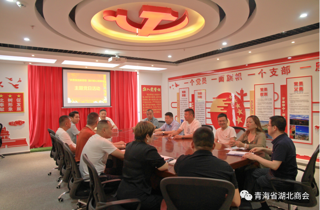 2023年8月8日,青海省湖北商会党支部在会议室召开党员大会。党支部书记王致亮、副书记李向东、纪检委员童新华,党员、预备党员、入党积极分子共13人参加会议。