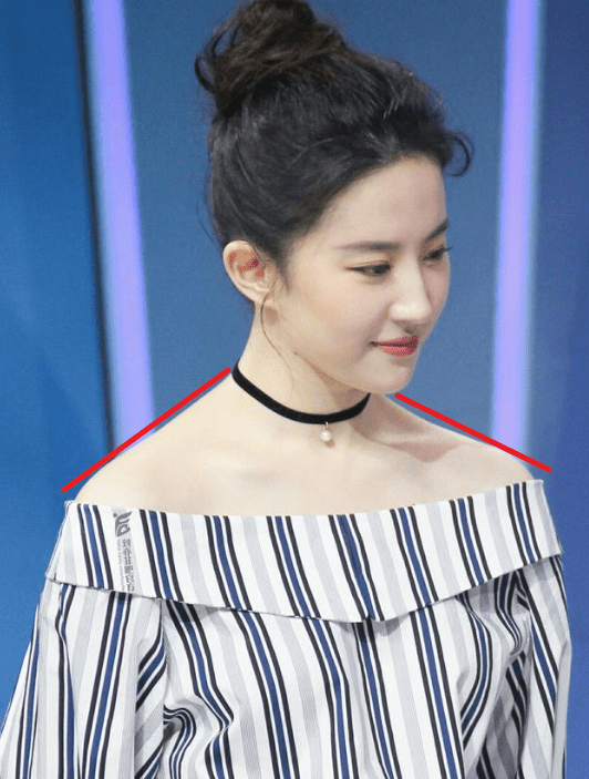 在满是直角肩的女艺人当中,她的溜肩就显得异常突出了。