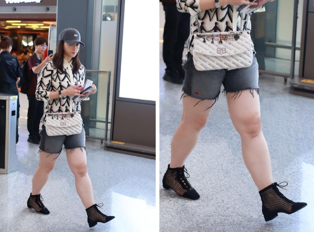 在网友们拍到她在机场的生图,照片中的脸部依然精致,再对比腿部,真真的不适应。