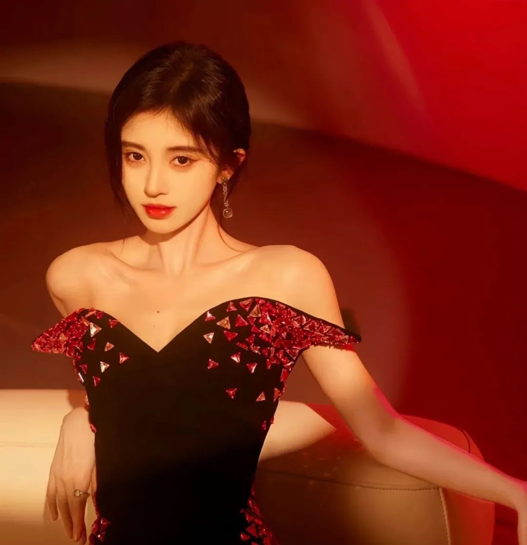 在晚礼服的衬托下,她也是很明艳动人。