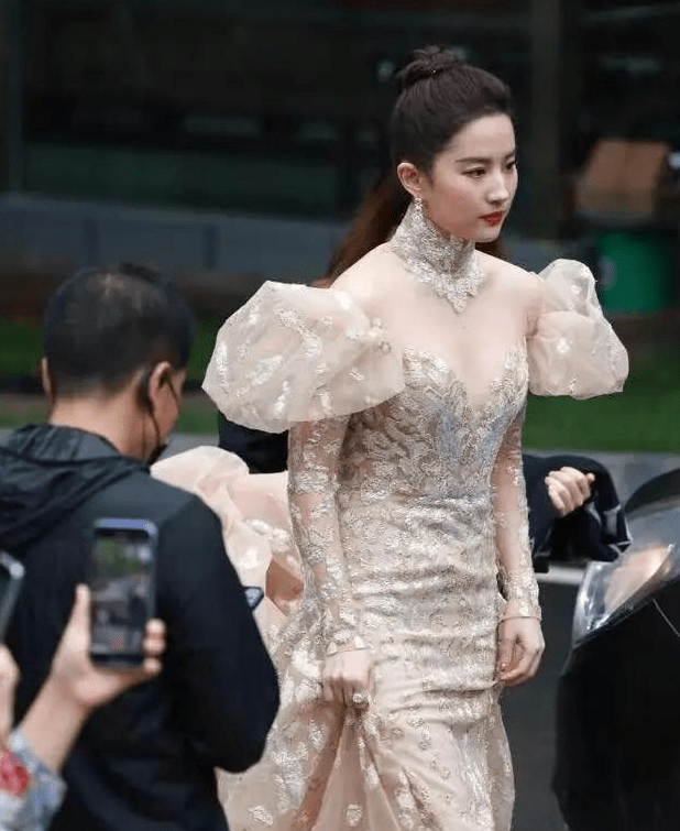 在其他活动现场穿的刺绣礼服。