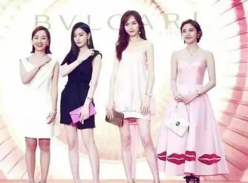 和圈内的女星们并排站在一起。