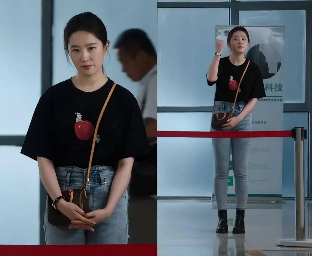 生图中的她穿得是很百搭的衣服,但是穿在她身上则显得很臃肿。