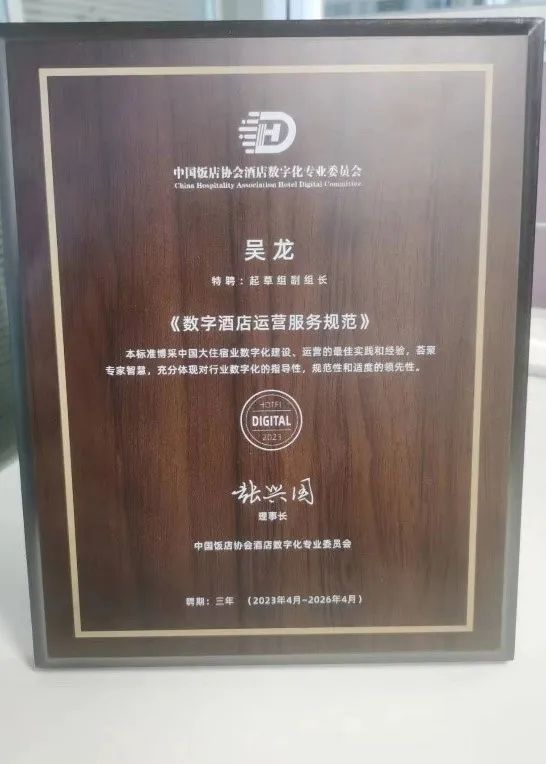 数字化酒店运营服务是未来酒店业发展的重要方向,本次会议上,绿地酒店旅游集团信息技术部总经理吴龙被特聘为起草组副组长,共同参与编写《数字酒店运营服务规范》团体标准。通过与来自全国各地的业内专家一起,深入探讨数字化时代下酒店业的发展趋势和挑战,不断沟通、论证,让《数字酒店运营服务规范》更贴近酒店日常,也让标准的指导与使用价值发挥更充分。