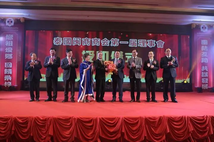 8月8日下午,泰国闽商商会第一届理事会就职典礼举行。泰国第27、30届总理、国会前主席川·立派,泰国国会前主席、泰中文化经济协会会长颇钦·蓬拉军,中华人民共和国驻泰王国大使馆参赞刘敬师,泰国席琳·荣颂亲王,石狮市委书记蔡永生,泰国中华总商会主席林楚钦,泰华九属会馆首长代表、泰国潮州会馆主席徐惠深,泰国福建社团联谊总会主席、泰国福建会馆理事长苏承智,以及来自全球40多个国家和地区约500位嘉宾参加仪式。石狮籍旅泰侨亲蔡孝兴荣任创会会长、首届理事会会长。