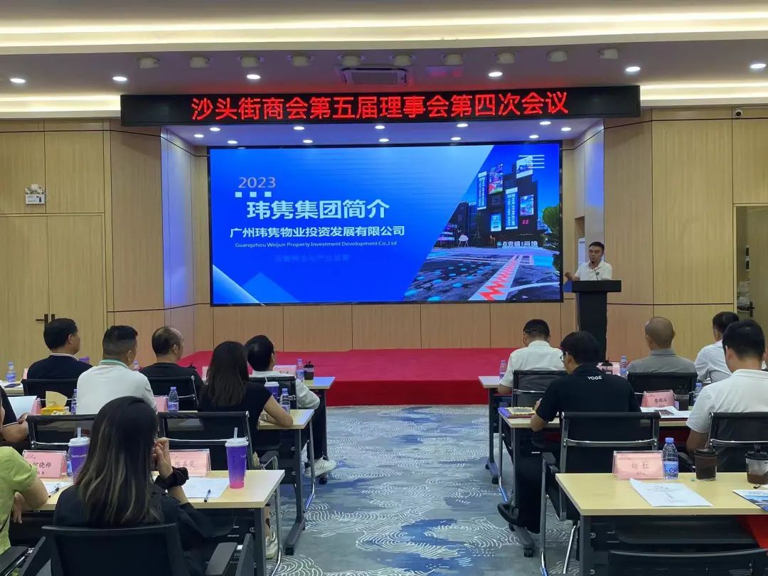 2023年8月11日下午,沙头街商会第五届理事会第四次会议在番禺区桥兴大道739号在云端园区隆重召开。会上玮隽集团股东代表凌总重点介绍了在云端项目的运营理念、发展方向及招商情况。