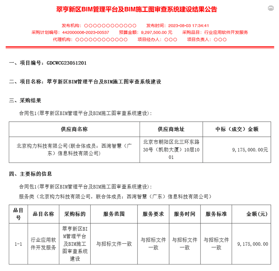 中标翠亨新区BIM管理平台及BIM施工图审查系统建设项目