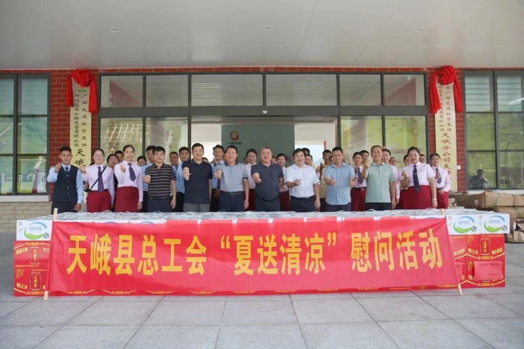 天峨县总工会到广西交通投资集团河池高速公路运营有限公司天峨分公司天峨管理区驻地开展“夏送清凉”慰问活动。为分公司员工送去牛奶、解暑饮料等防暑降温物品。