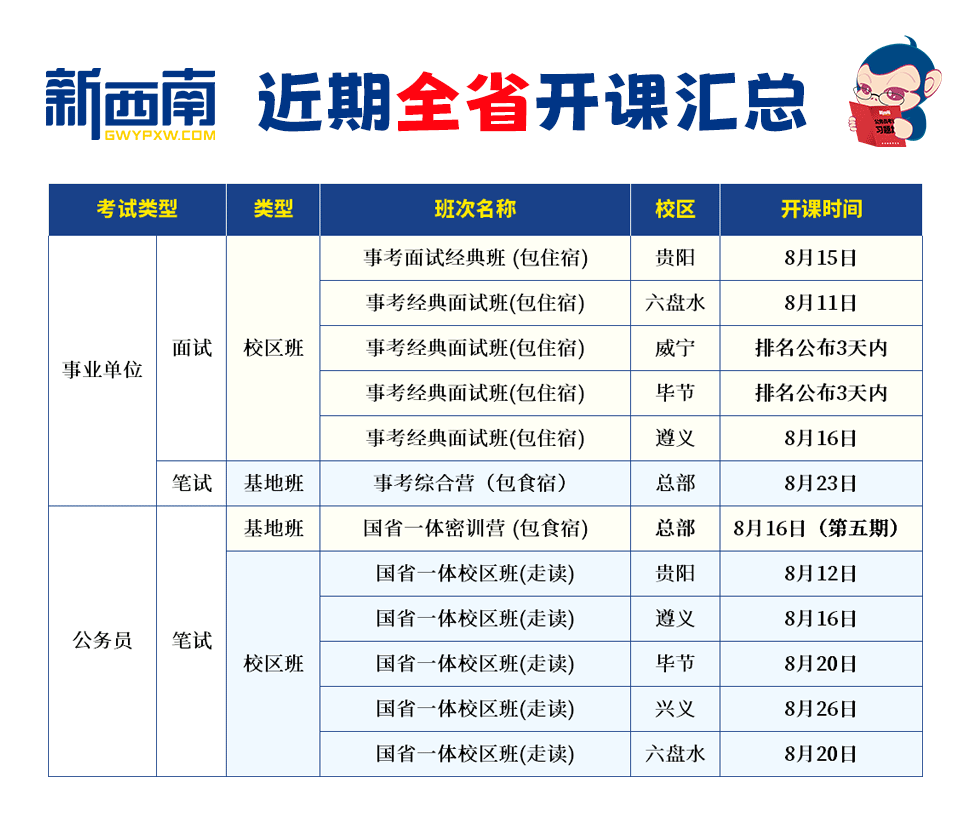 贵阳、六盘水、毕节、遵义多地开班