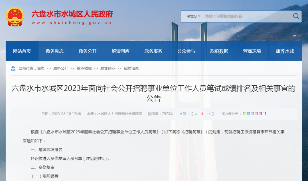 水城区事业单位排名