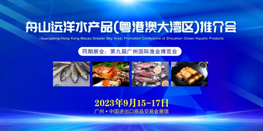 为构建形成国内大循环为主体、国内国际双循环相互促进的新发展格局,高质量完成全年商务发展目标,舟山市商务局、舟山国家远洋渔业基地、舟山市贸促会通过线下展示与推介活动相结合的方式,将于2023年9月15日-17日在广州国际渔博会期间举办2023舟山水产品(粤港澳大湾区)推介会,助力中国舟山的水产品拓展华南市场。