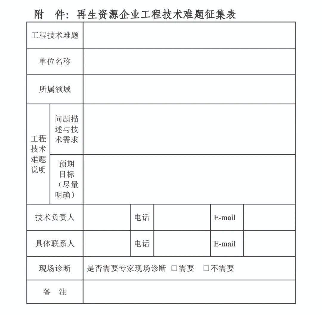 附 件:再生资源企业工程技术难题征集表