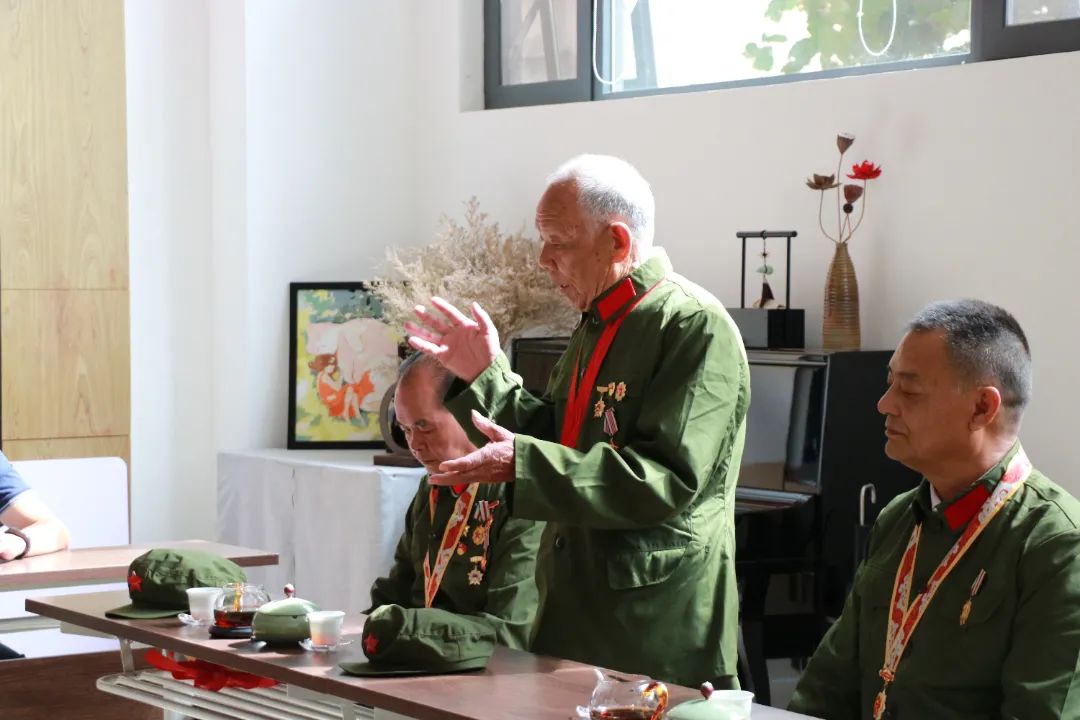 座谈会上气氛和谐融洽,老兵们讲述了自己参军报国的经历。