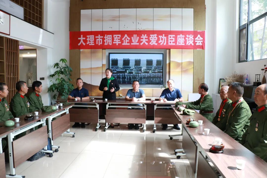 为庆祝中国人民解放军建军96周年,深入贯彻落实党的二十大精神以及习近平总书记关于退役军人和双拥工作的重要论述,进一步浓厚“尊崇军人职业、尊崇功臣模范,尊重退役军人”的社会氛围,8月10日,大理市拥军企业关爱功臣座谈会召开。