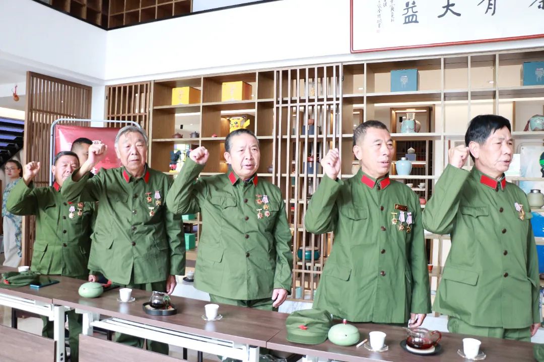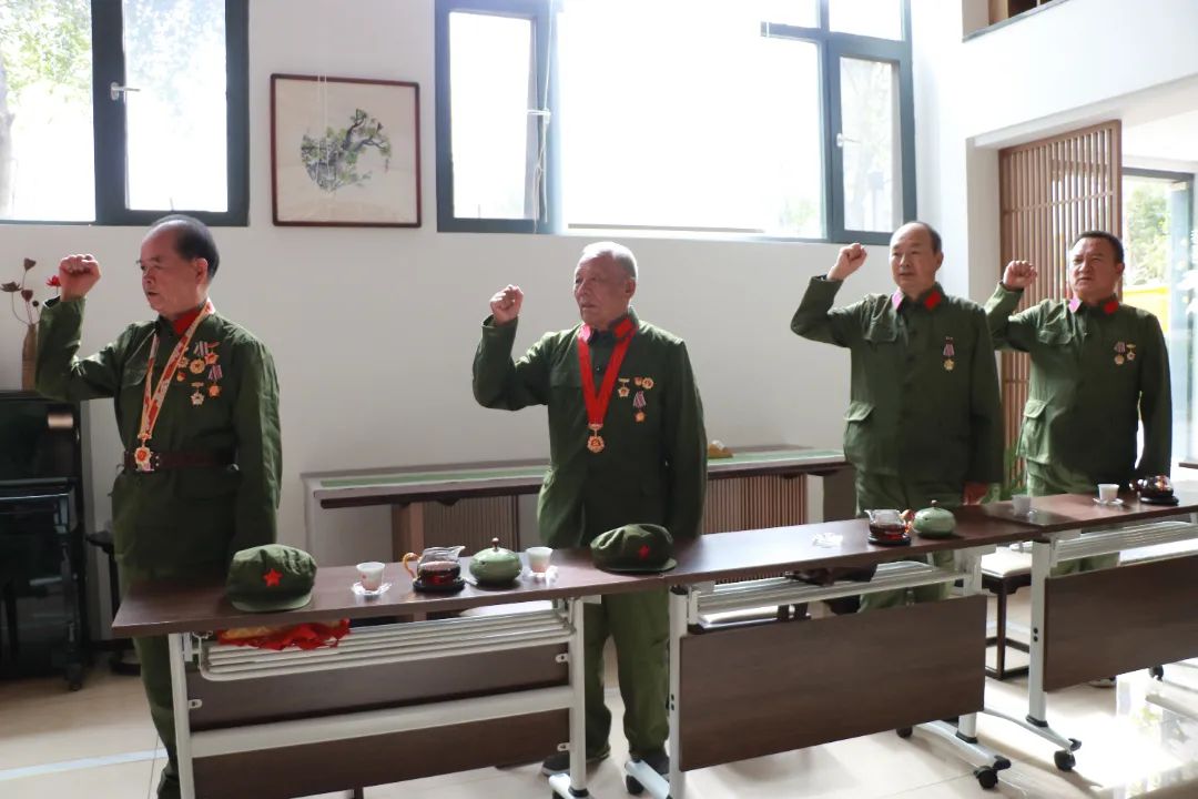 座谈会上,退役老兵们共同重温军人誓词,他们声音已经苍老,但是誓言仍然铿锵有力。