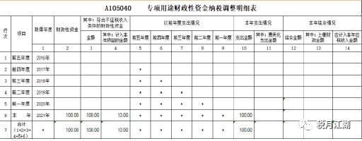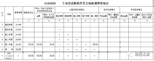 企业取得财政类政府补助资金,按会计准则的规定,用于补偿企业以后期间的相关成本费用或损失的的或用于企业购置非货币类资产,收到当期确认为递延收益,属于补偿以后期间成本费用的,在确认相关成本费用或损失的期间,计入当期损益或冲减相关成本;属于用于资产购置补助的,在购置资产达到可使用状态后,在相关资产使用寿命内按照一般按资产折旧摊销进度分期计入损益。企业取得的财政资金,符合《关于专项用途财政性资金企业所得税处理问题的通知》(财税〔2011〕70号)规定的不征税收入条件的,按企业所得税的规定,用于支出所形成的费用,不得在计算应纳税所得额时扣除;用于支出所形成的资产,其计算的折旧、摊销不得在计算应纳税所得额时扣除。企业取得符合不征税收入的财政资金,一般属于货币类且补偿以后期间发生的成本费用的居多,取得年度和以后年度,企业所得税申报填列《A105040专项用途财政性资金纳税调整明细表》及《A105000纳税调整项目明细表》相关行次即可。如果企业取得符合不征税收入的财政性资金,为非货币性资产,如企业取得政府部门扶持的设备一台100万元,确认为递延收益,可使用5年,取得当年折旧10万元,次年折旧20万元,如何填列相关明细表呢?取得非货币性资产财政补助,视同取得货币性资产并于取得日即自行购置资产完成;符合不征税收入的非货币性资产补助企业所得税计税基础为零。企业所得税申报填列如下: