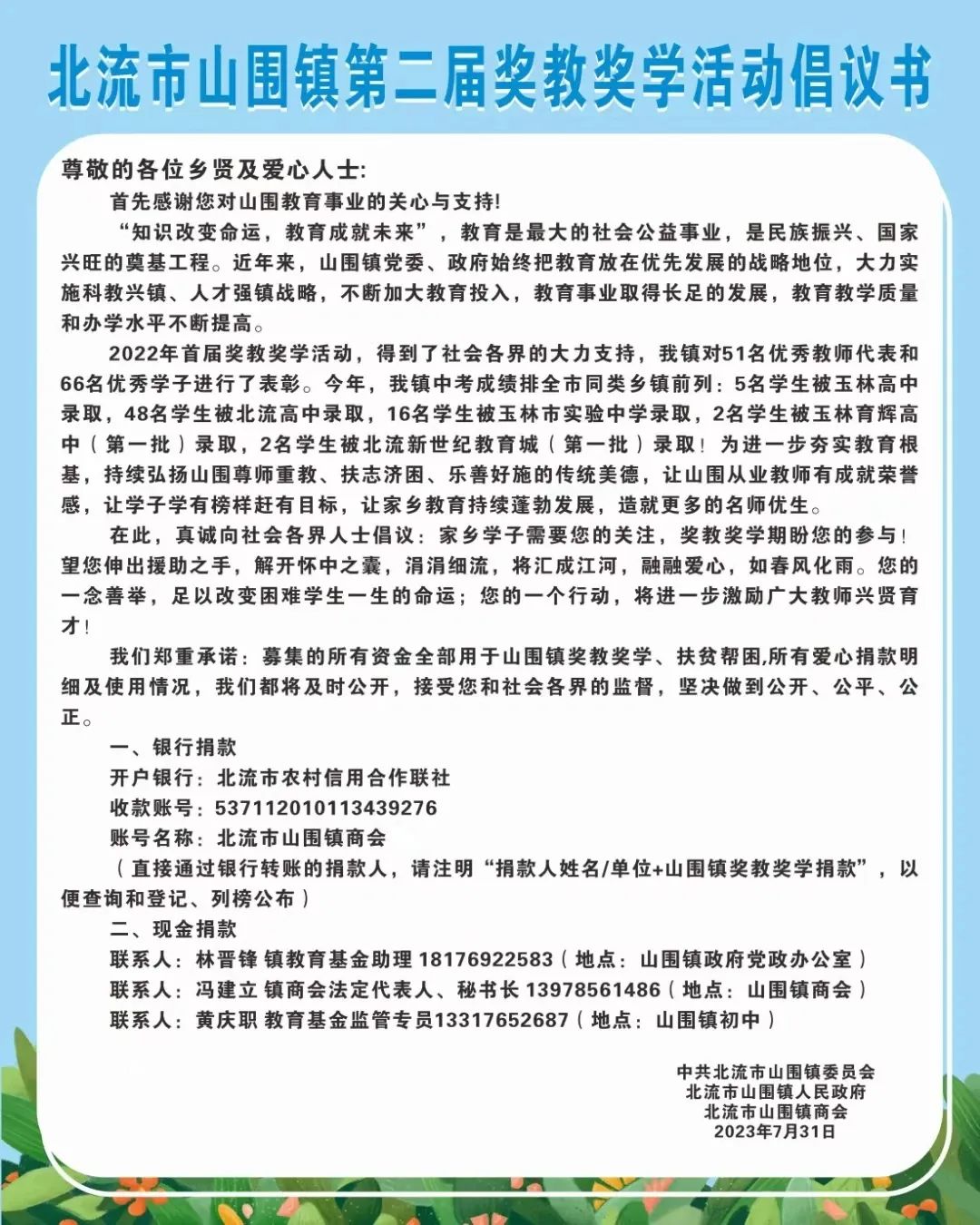 37. 黄锡樑(李村乡贤,北流市亿优商贸有限公司)2000元(银行)