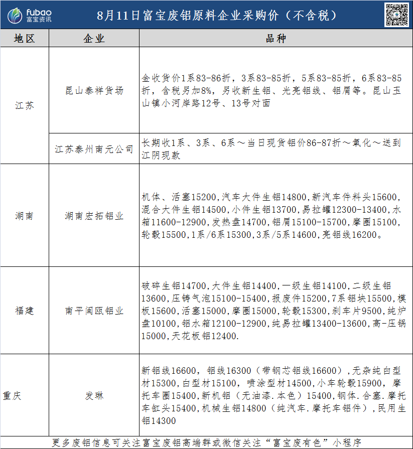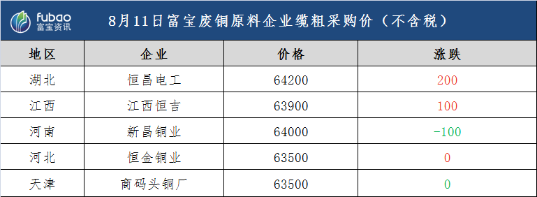 8月11日 富宝基准价、企业报价